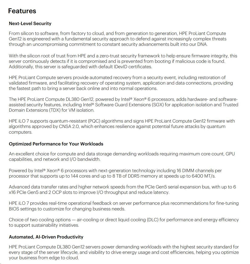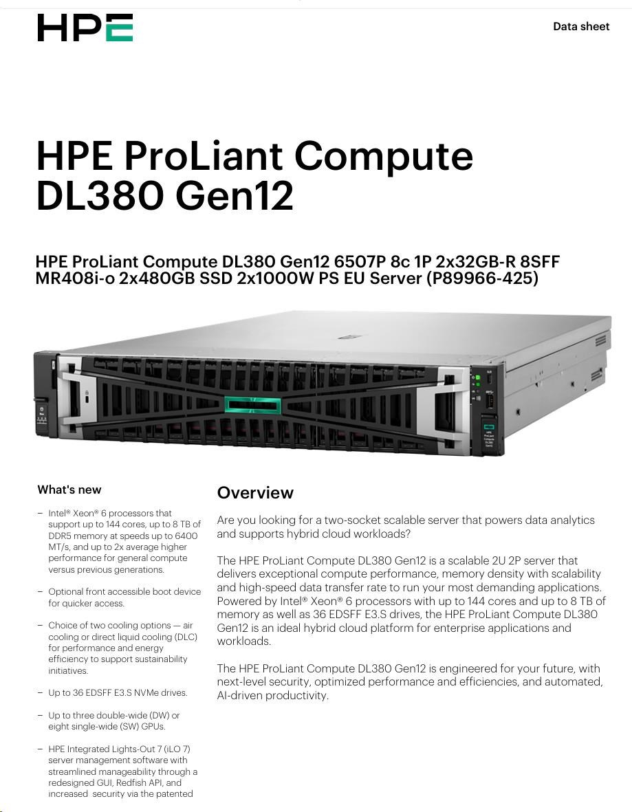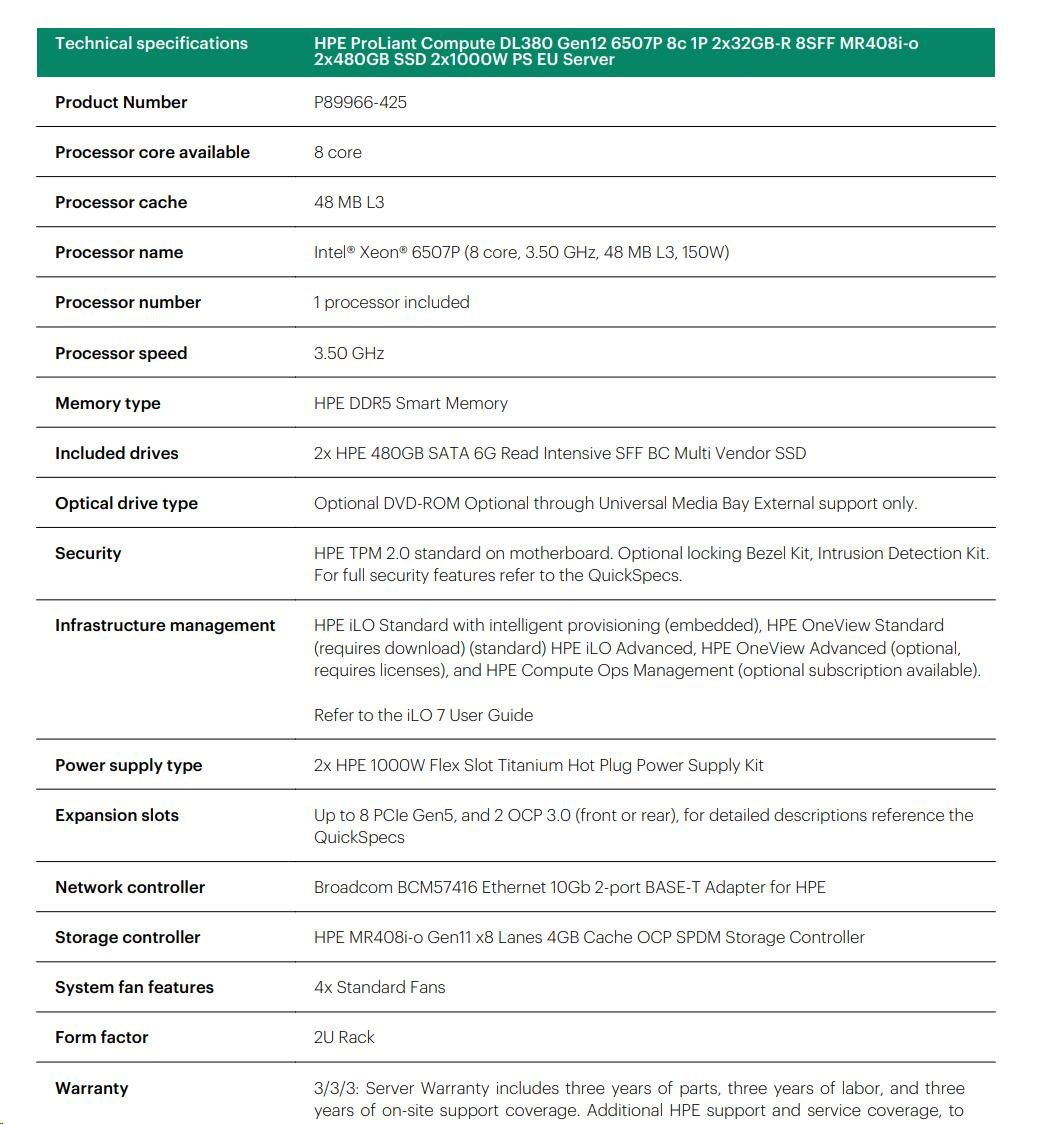 Diskuze k produktu HPE PL DL380g12 6507P (3.5/8C) 2x32G (P69727) 2x480G MR408i-o 8SFF 2x1000W 10GbE NBD333 Smart Choice