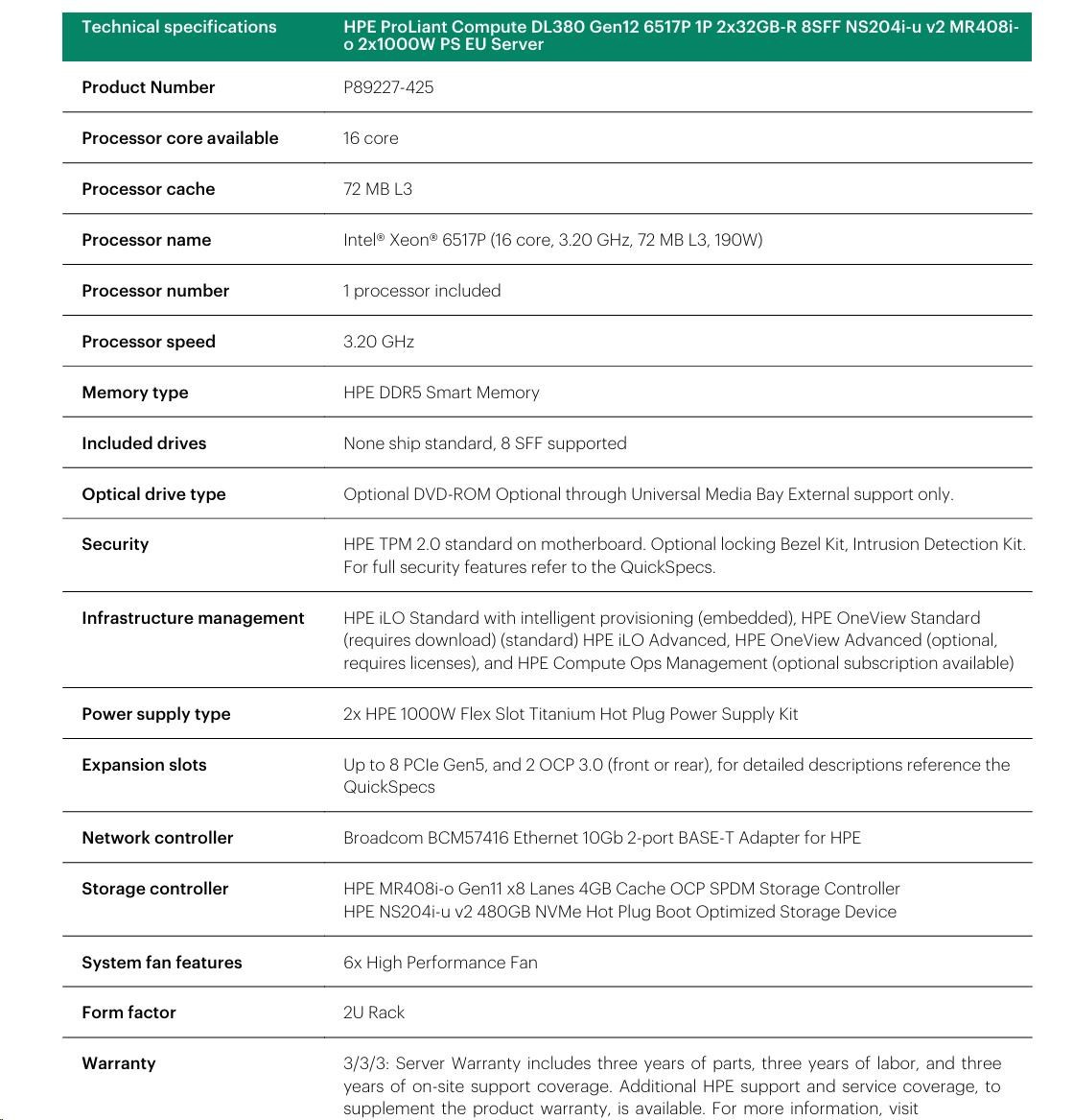 Diskuze k produktu HPE PL DL380g12 6515P (2.2/16C) 2x32G (P69727) 2x480G MR408i-o 8SFF 2x1000W 2p10G-T NBD333 Smart Choice