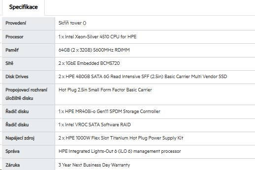 Diskuze k produktu HPE PL ML110g11 4510 (2.4G/12C) 2x32G (P64706) 2x480G (P40497) 2x1000W MR408i-o 8SFF 2x1G NBD333 Smart Choice