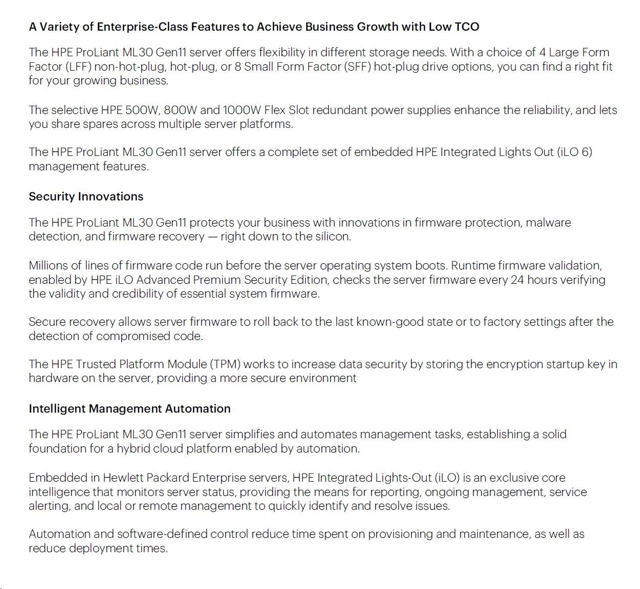 Máte k produktu dotaz? Zeptejte se nás.Hodnocení produktu HPE PL ML30g11 6315P (2.8-5.2G/4C4T) 1x32G 2x1TB SATA 4LFF-NHP 1x350 VROC 4p1G NBD311 Smart Choice