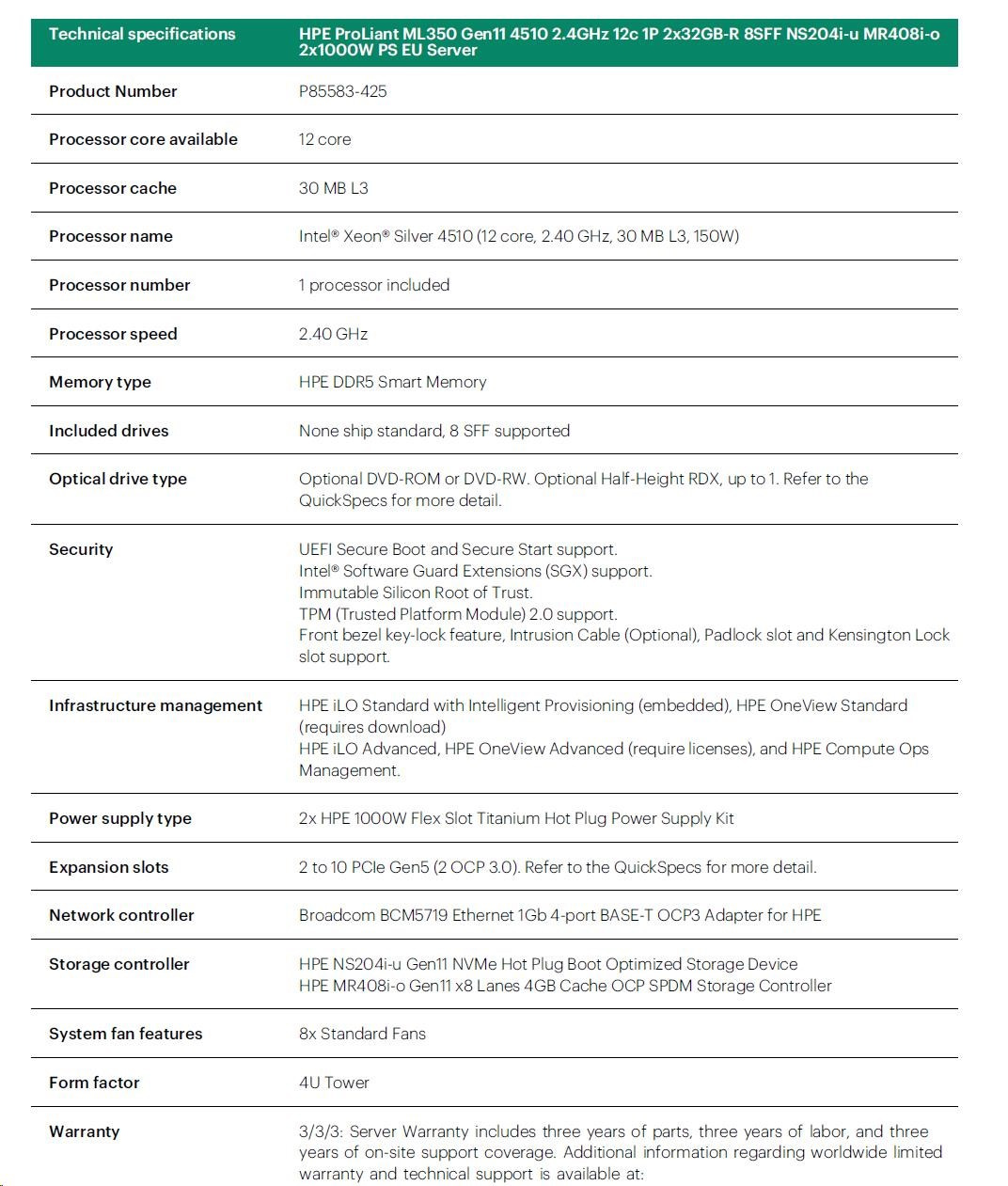 Diskuze k produktu HPE PL ML350g11 4510 (2.4G/12C) 2x32G (P64706) NS204(2x480) MR408i-o 2x1000W 8SFF 4p1Gb 8fans Smart Choice