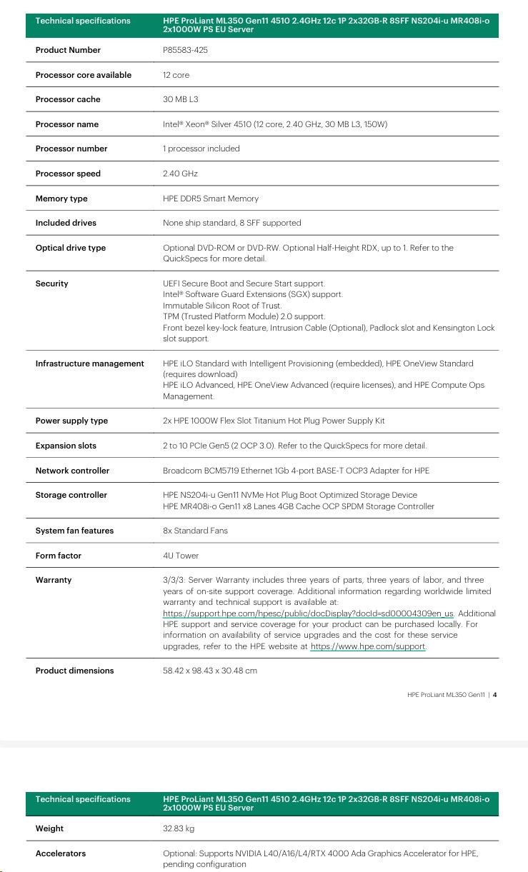 Máte k produktu dotaz? Zeptejte se nás.Hodnocení produktu HPE PL ML350g11 4510 (2.4G/12C) 2x32G (P64706) NS204(2x480) MR408i-o 2x1000W 8SFF 4p1Gb 8fans Smart Choice