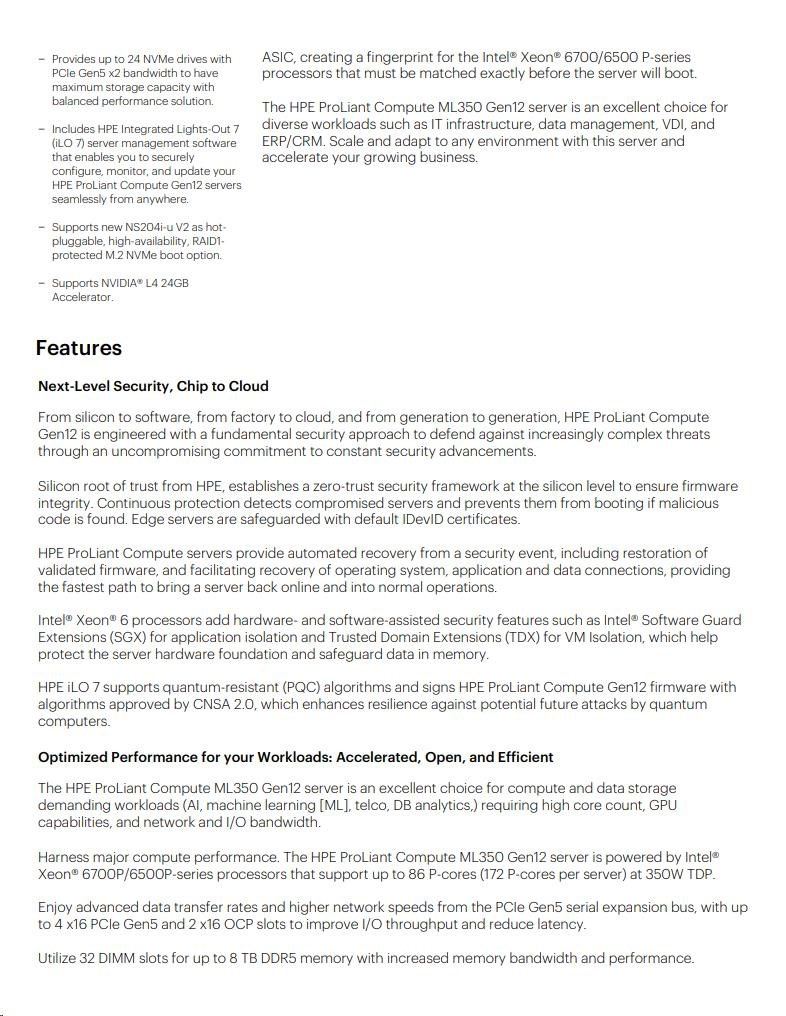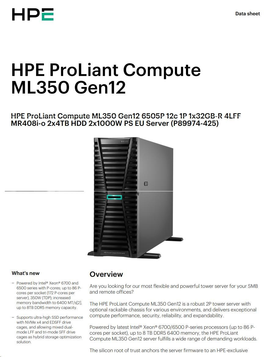 Máte k produktu dotaz? Zeptejte se nás.Hodnocení produktu HPE PL ML350g12 6505P (2.2/12C) 1x32G (P69727) 2x4TB 4LFF MR408i-o2x1000W 1GbE NBD333 Smart Choice