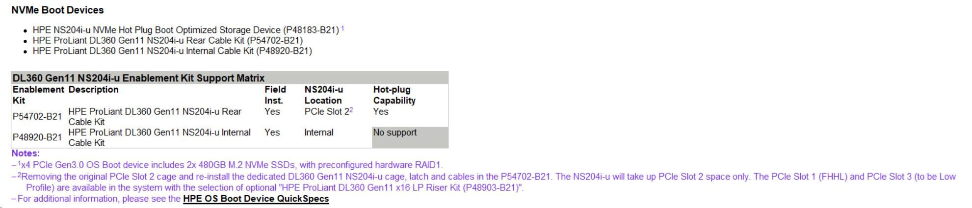 | DL360 Gen11 NS204i-u Enablement Kit Support Matrix | ||||