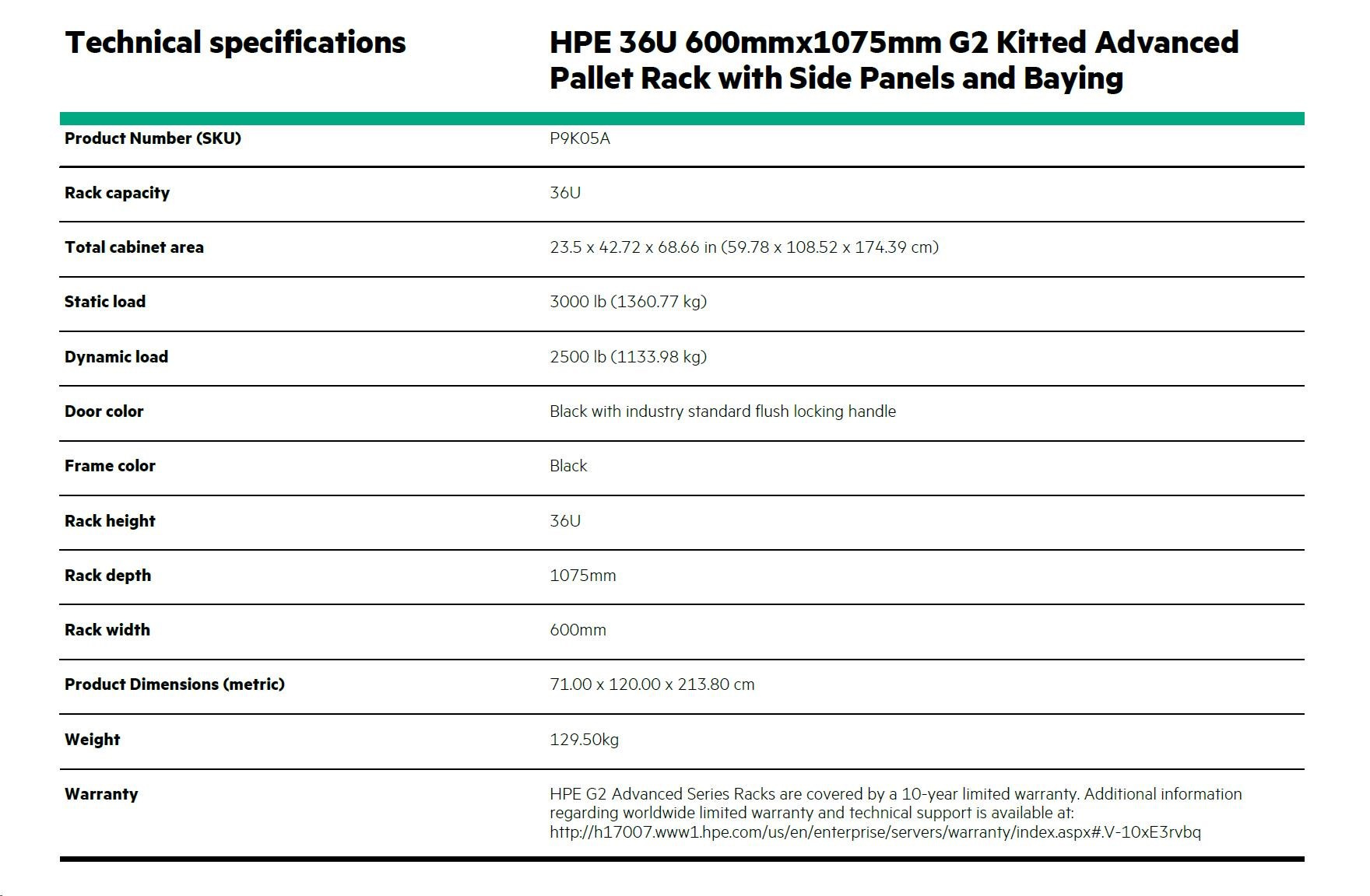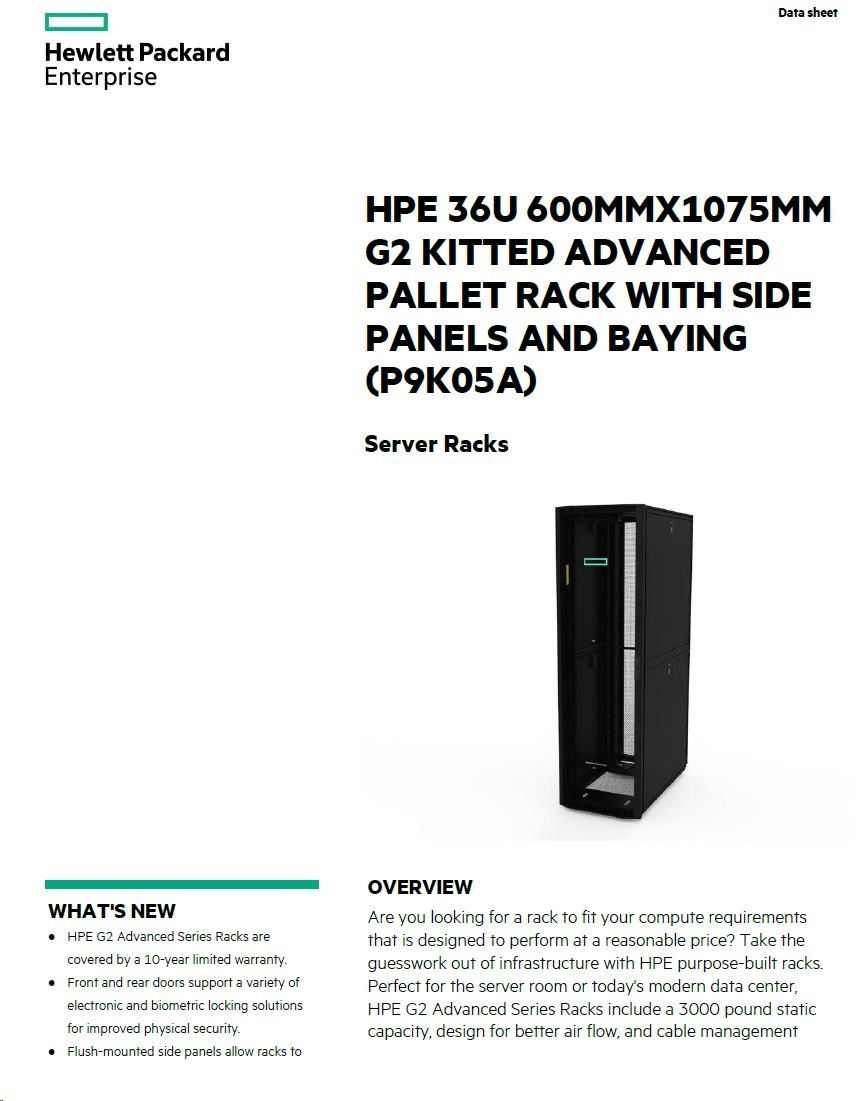 HPE Rack 36U 600mmx1075mm G2 Kitted Advanced Pallet Rack with Side Panels and BayingHPE 36U 600mmx1075mm G2 Kitted Advanced Pallet Rack with Side Panels and Baying.