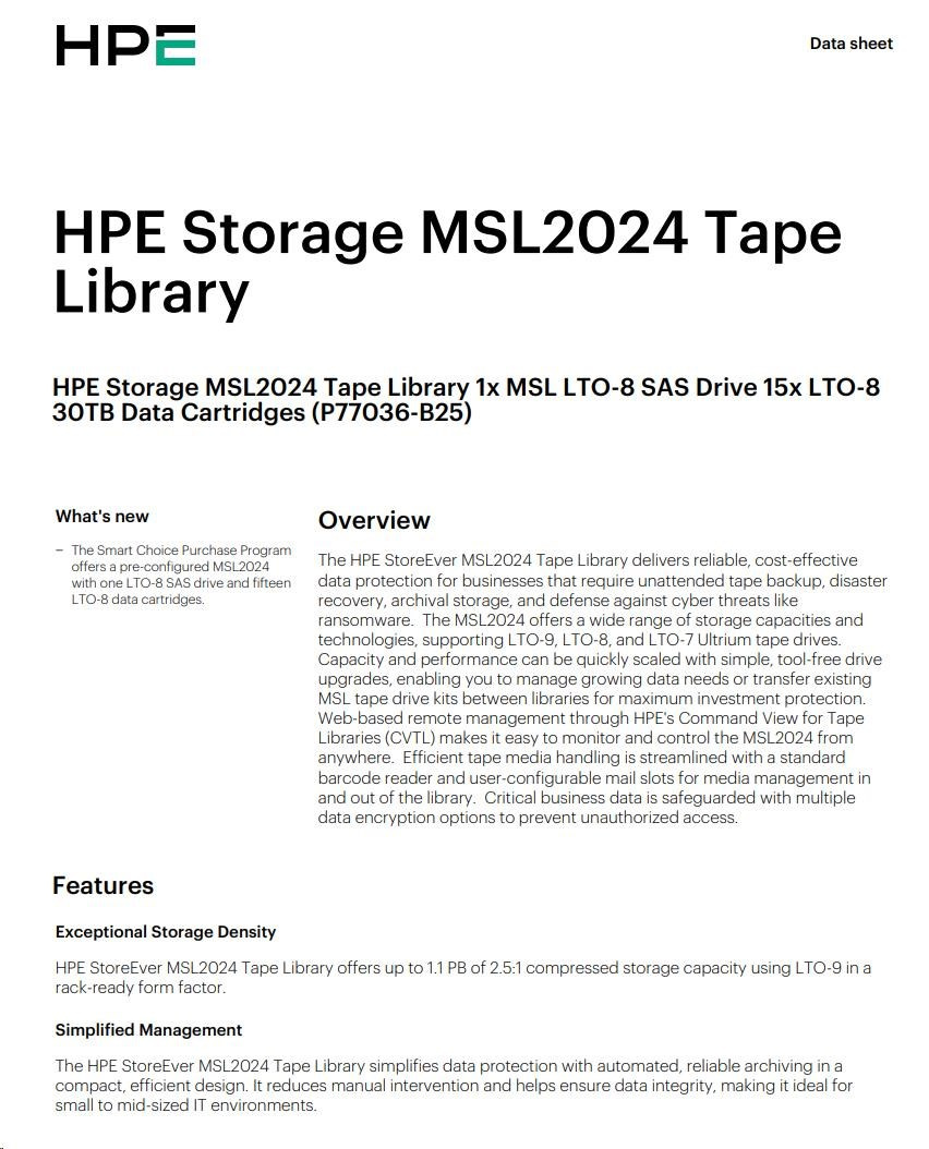 Diskuze k produktu HPE Storage MSL2024 Tape Library (MSL LTO8 SAS Drive + 15x Q2078A LTO8 30TB Data Cartridges + Q2015A BarCodeLabelPack)