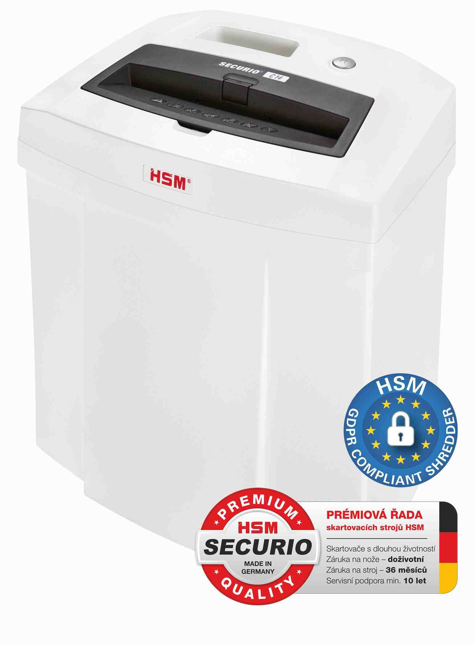 HSM skartovač Securio C14 (řez: Kombinovaný 4x25mm | vstup: 225mm | DIN: P-4 (3) | papír, sponky, plast. karty )řez: Kombinovaný 4x25mm vstup: 225mm DIN: P-4 (3) papír, sponky, plast. karty.