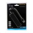 Tento HUB nabízí čtyři USB 3.0 porty s funkcí Plug & Play a standardním USB nabíjením – HUB automaticky detekuje, jestli je připojeno zařízení pro USB nabíjení. Rozhraní USB 3.0 je důležité zejména pro datové přenosy z USB 3.0 paměťových karet a flash disků, kde se nejvíce využije jeho vysoká přenosová rychlost. LED dioda zobrazuje stav čtení a zápisu dat.