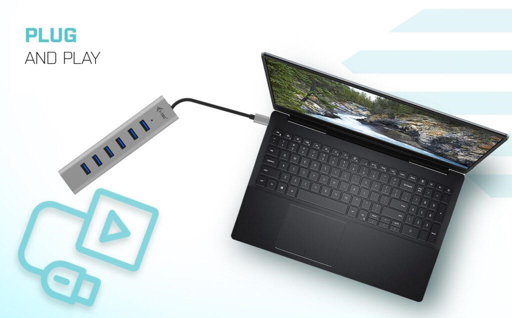 Hub nevyžaduje instalaci ovladačů, pouze jej pomocí USB-C kabelu připojíte a můžete jej ihned začít využívat. Hub má vestavěnou přepěťovou ochranu vašeho počítače pro případ zkratu na periferních zařízeních. Díky kompaktním rozměrům a nízké hmotnosti jej můžete mít v brašně stále sebou – kovový povrch ostatně chrání hub před poškozením a před poškrábáním.