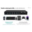 - Podpora až 3 hostitelských zařízení (2× notebook/tablet + 1× herní konzole/PC)