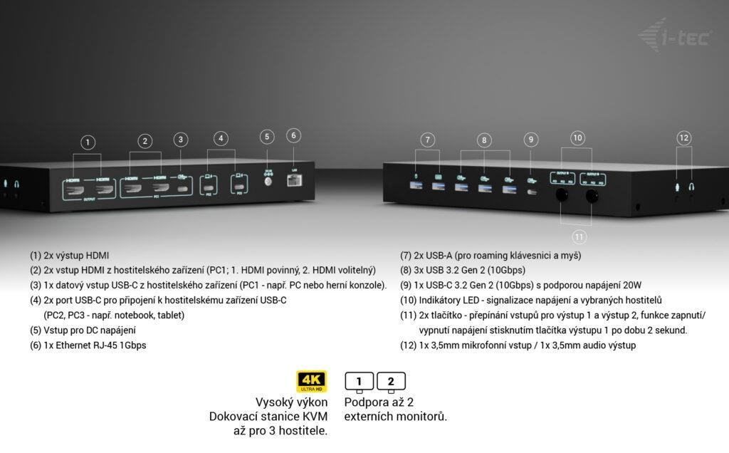 Diskuze k produktu i-tec USB-C KVM Docking station for 3 Hosts, Dual Display, Power Delivery 1x 92W/2x 65W
