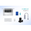 Má váš nejnovější notebook, tablet nebo smartphone jen jediný USB-C port nebo thunderbolt 3 a vy chcete i nadále používat běžné USB periferie? Jste kvůli nedostatku USB portů nucení neustále připojovat a odpojovat svá oblíbená USB zařízení? S tímto hubem získáte další 4 standardní USB 3.0 porty. Připojte si externí klávesnici a myš, přenášejte data nebo filmy z USB flash disku rychlostí až 5 Gbps nebo nabíjejte svá mobilní zařízení.