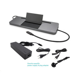 Připojte ke svému notebooku, tabletu, PC nebo smartphonu s novým USB-C nebo Thunderbolt 3 rozhraním své oblíbené příslušenství. Použitím této dokovací stanice získáte přístup k napájení a k výstupu až pro tři externí monitory (platí pro systémy s Windows).