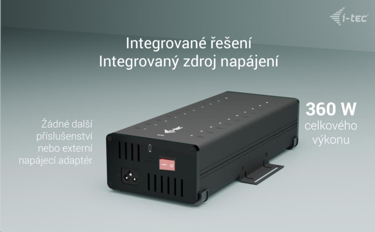 - HUB obsahuje integrovaný napájecí adaptér (360 W)