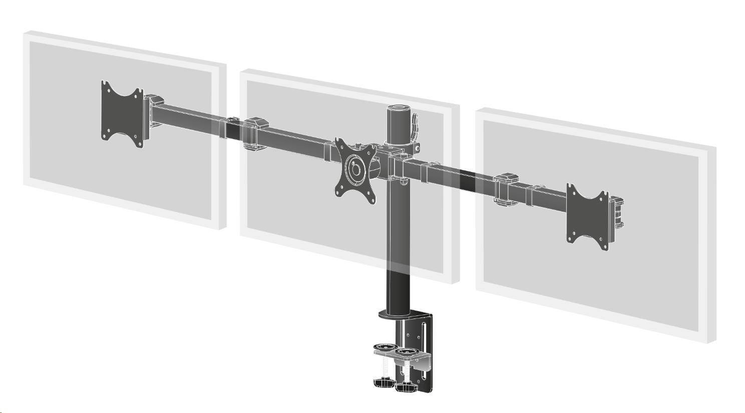 iiyama display holder, triple desktop armThe iiyama DS1003C-B1 is a desk mount for three flat screens up to 27”. Thanks to the arm you can cr