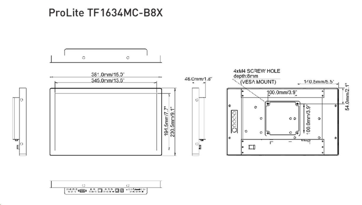 iiyama ProLite TF1634MC-B8X, 39.6 cm (15,6''), Projected Capacitive, 10 TP, Full HD, blackTyp dotykové vrstvy:CAP (capacitive).