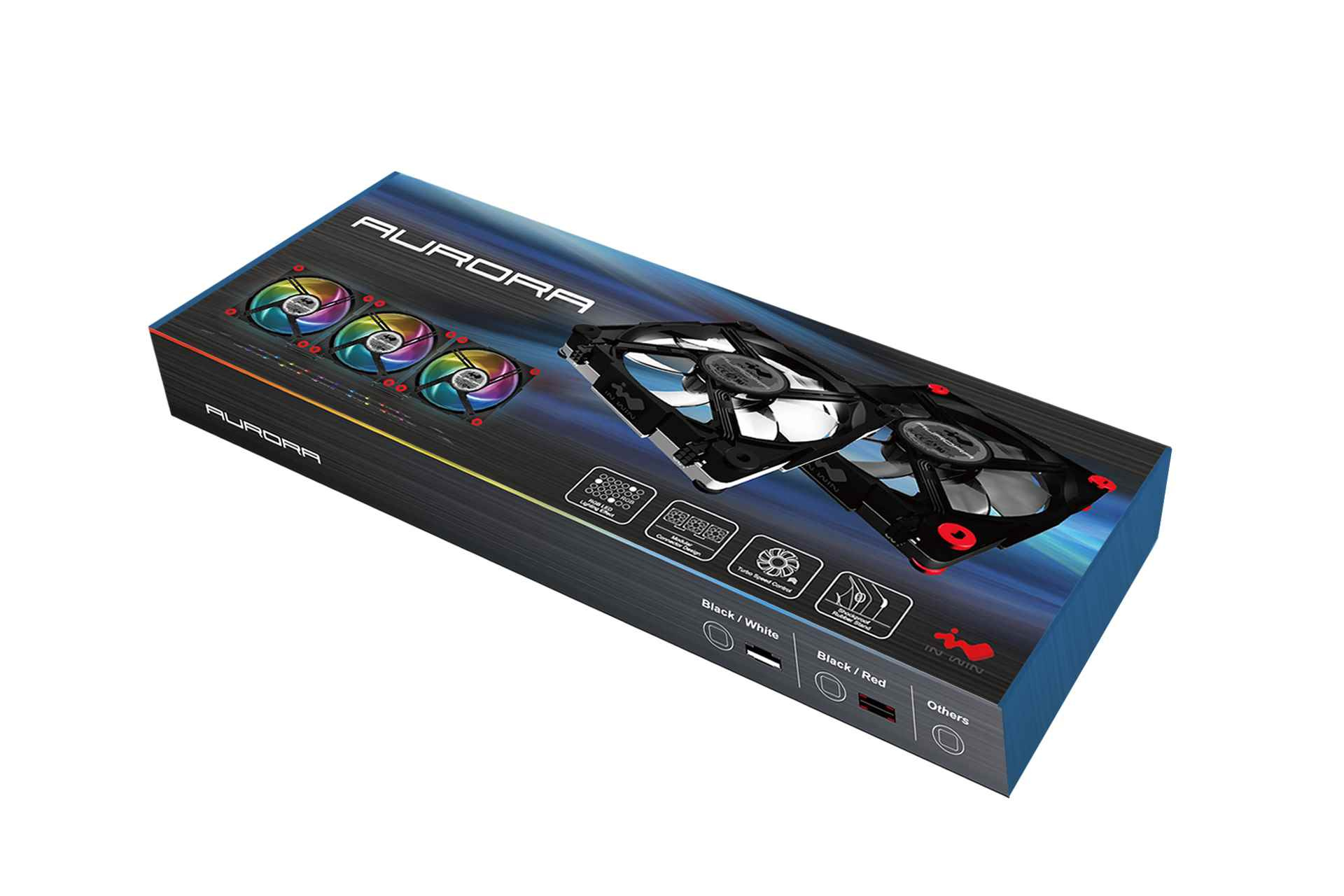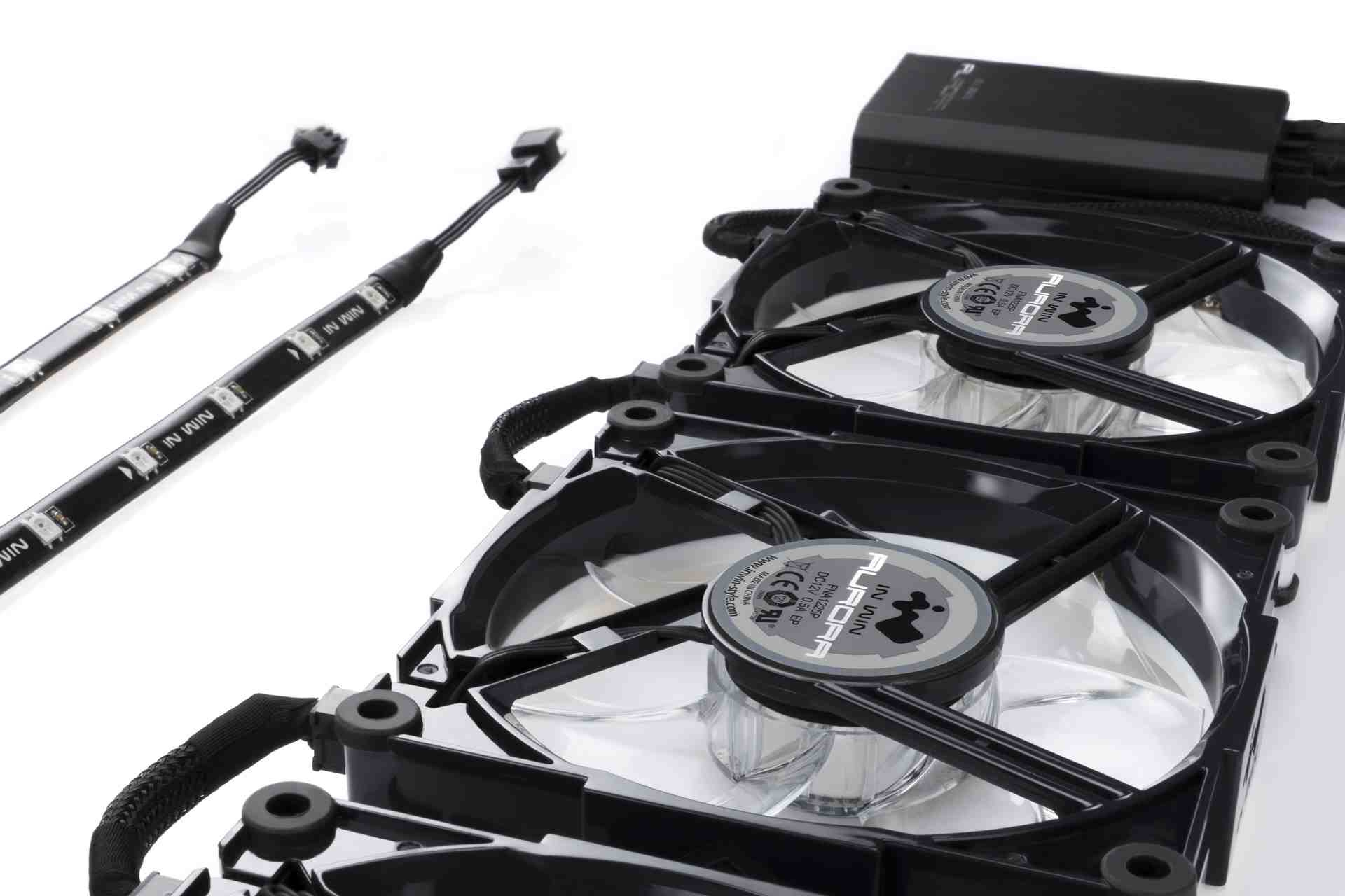 IN WIN Aurora Black/Red (3 fans + controller + 2 x led strip)Typ chladiče:Aktivní; Využití chladiče:Na procesory; Velikost ventilátoru:120x120; Barva podsvícení:RGB; Napájecí konektor:6pin.