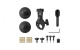 Montážní sada kamery na motorku Insta360. Obsahuje objímku na řidítka, dva samolepicí držáky na helmu, dva adaptéry se stativovým závitem, adaptér s vnitřním stativovým závitem, pojistné šrouby a plastové vložky. Součástí sady je i šestihranný klíč a utahovací nástroj..