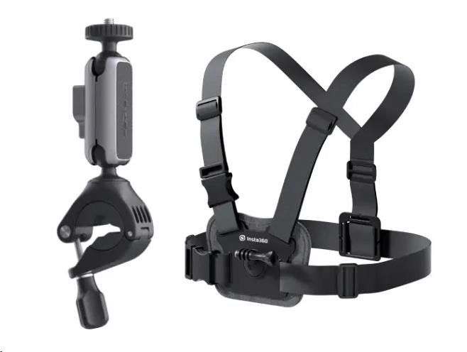 Balíček příslušenství pro akční kamery X4, X3, ONE X2, ONE R, ONE RS, GO2 a GO3 a GO3 S. Balíček obsahuje hrudní popruh a držák na řídítka. Kameru je nutné přichytit přímo na stativový šroub držáku na řídítka - kvůli stabilitě nelze mezi kameru a držák vložit prodlužovací tyč..