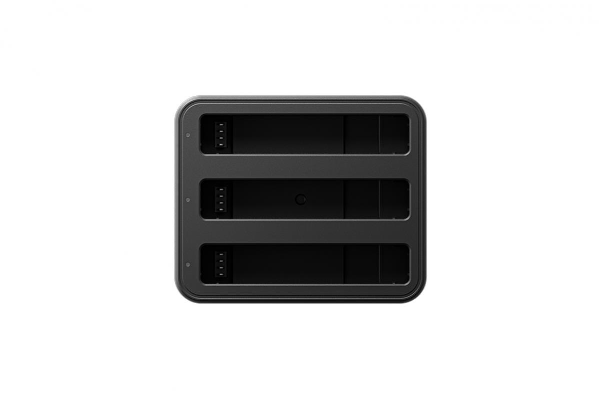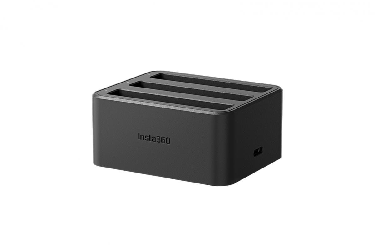 Insta360 X4 nabíjecí hubNabíjecí hub pro tři baterie pro kameru Insta360 X4. Hub nabije 2290 mAh akumulátor za 43 minut (za 26 minut na 80%)..