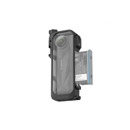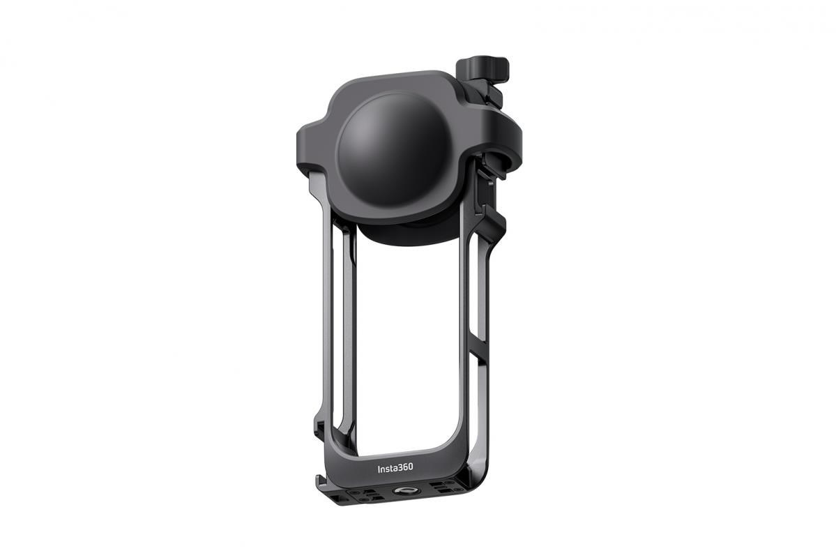 Lehký kovový rámeček pro příslušenství pro kameru Insta360 X5 poskytuje plnou ochranu kamery. Disponuje rychloupínacím bodem, dvěma držáky na příslušenství a závity 1/4". Součástí je kvalitné ochrana mikrofonu pro čistý zvuk i při větru..