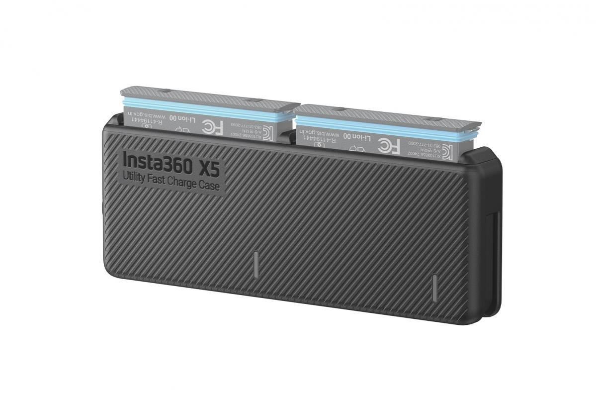 Insta360 X5 rychlonabíjecí pouzdroNabíjecí hub pro tři baterie pro kameru Insta360 X4. Hub nabije 2290 mAh akumulátor za 43 minut (za 26 minut na 80%). Váha: 109g Rozměry: 75 x 62 x 34 mm.
