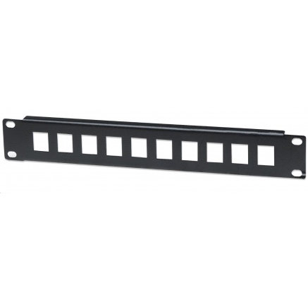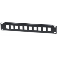 10" Blank Patch Panel 1U, Ten Ports, Gray SKU: 714969 Highlights 10" rackmountable Ten blank ports for keystone jacks Color: Gray RAL7035 1U Dimensions 7 (L) x 254 (W) x 44.45 (H) [mm] 0.28 (L) x 10 (W) x 1.75 (H) [in] Package Contents 10" Blank Patch Panel Set of four cage nuts.