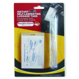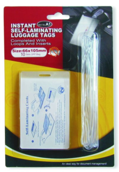 Jmenovka o velikosti 66×105 mm se vytvoří za studena vlepením identifikačního štítku do předpřipravené kapsy. Jmenovka má na okraji otvor pro uchycení. Balení 10 ks, obsahuje smyčky pro upevnění na kufr nebo zavazadlo. Zde názorné VIDEO pro demonstraci pracovního postupu HEAKATLAM – JMENOVKA NA KUFR..