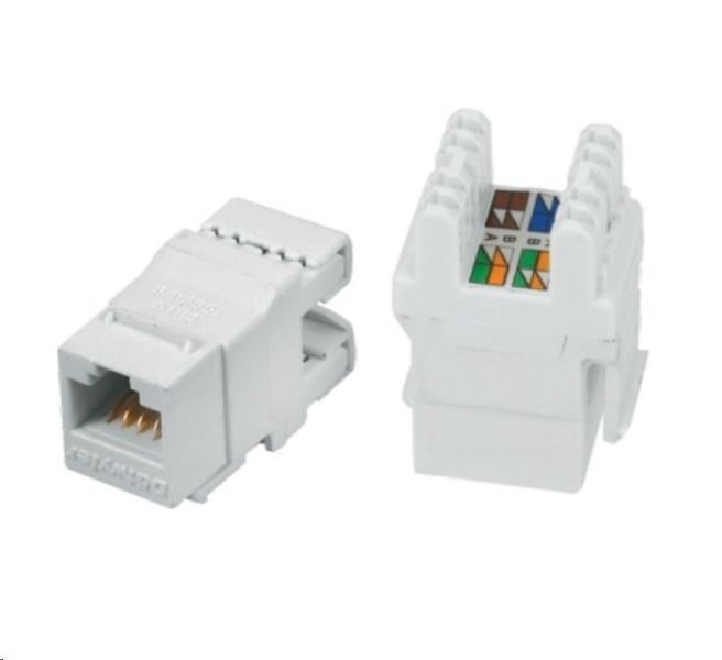 Keystone Cat6, UTP, duální svorkovnice, černýTyp komponenty:Keystone modul; Provedení:Cat6; Stínění:UTP.
