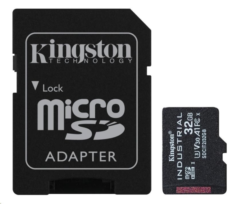 Kód: 443634Prodejní číslo: SDCIT2/32GBKingston MicroSDHC karta 32GB Industrial C10 A1 pSLC Card + SD Adapter