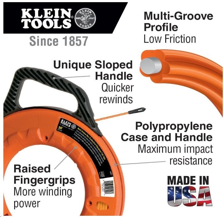 KLEIN TOOLS - protahovací pero zakončené ocelovou spirálou, sklolaminátové jádro, délka 30m, průměr 4.8mm