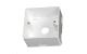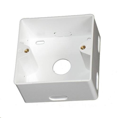 Krabice pro zásuvku na omítku, 80x80x40, bíláBílá plastová krabice na zeď s kovovými závity pro pevné uchycení zásuvky..