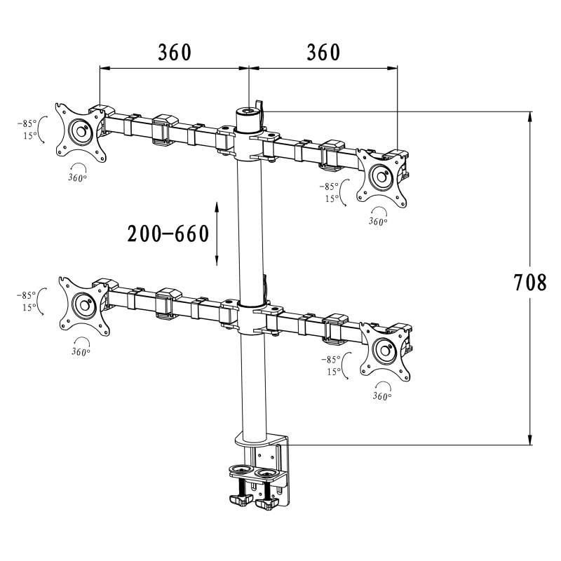 Kvalitní stolový držák na 4 monitory Ergosolid NF44Stolní držák na 4 monitory 10-30", nosnost 40kg, VESA 75x75 a 100x100.