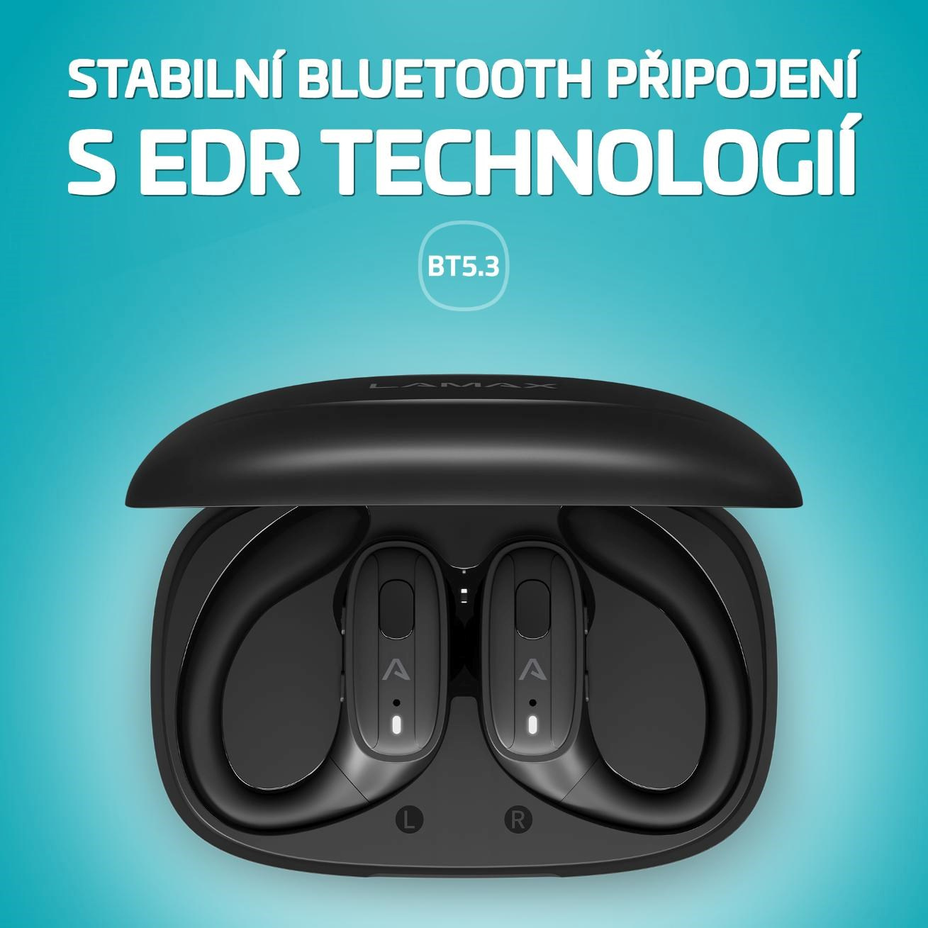 Podpora kodeků AAC & SBC spolu s technologií EDR zajišťuje stabilní přenos napříč zařízeními. Díky tomu máš čistý a vyvážený zvuk, nižší zpoždění a jasný hlas i v rušném prostředí.