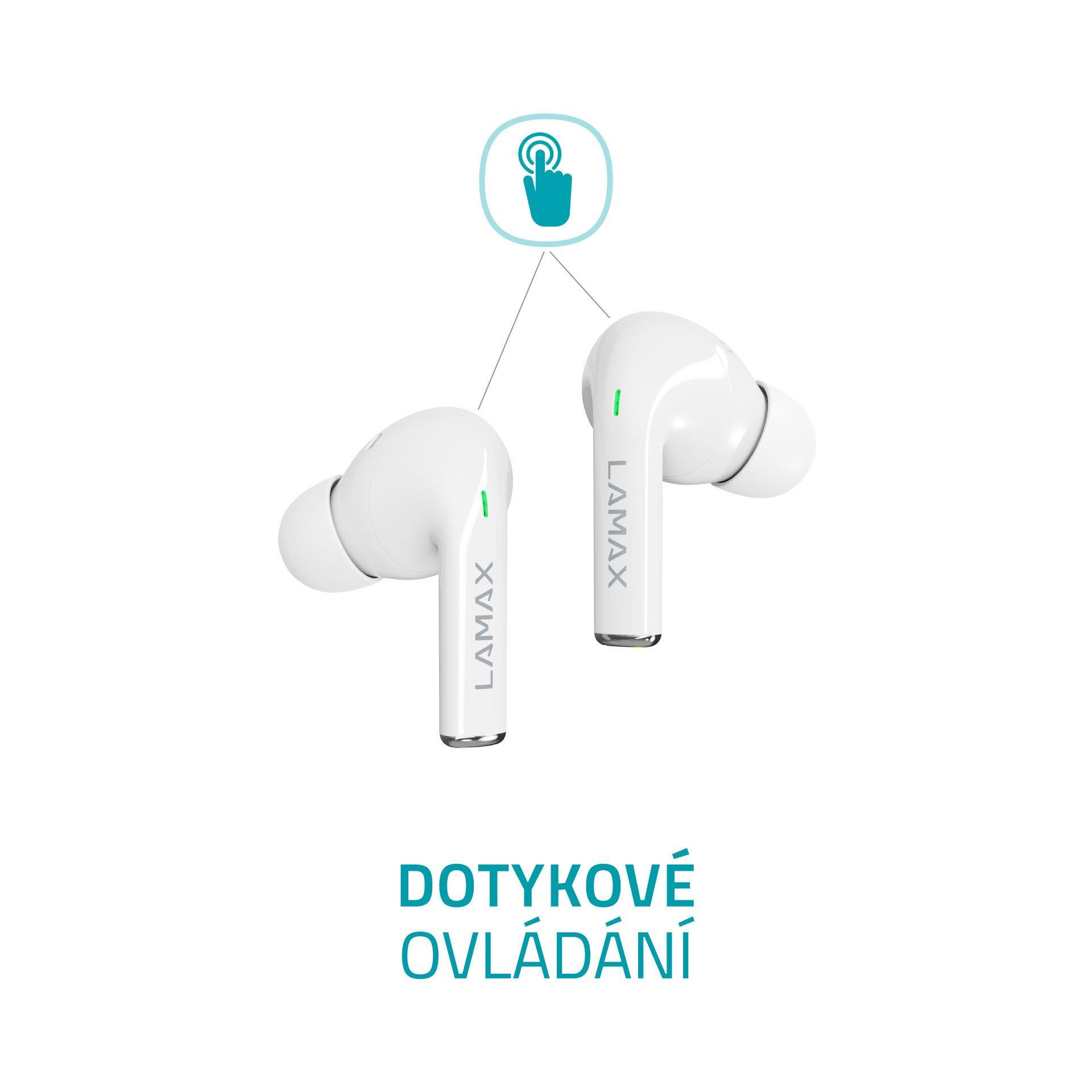 LAMAX Clips1 ti udělají radost vyladěným LAMAX BeatBass® zvukem, kdykoliv si je nasadíš. Nahoď fresh playlist a zaposlouchej se do masivních beatů! S nejnovějším Bluetooth 5.1 a AAC kodekem ti potečou songy z mobilu do sluchátek v nejvyšší kvalitě. Přepínej je rychlostí blesku díky dotykovému ovládání. Špunty se připojí, hned jak je vyndáš z pouzdra.