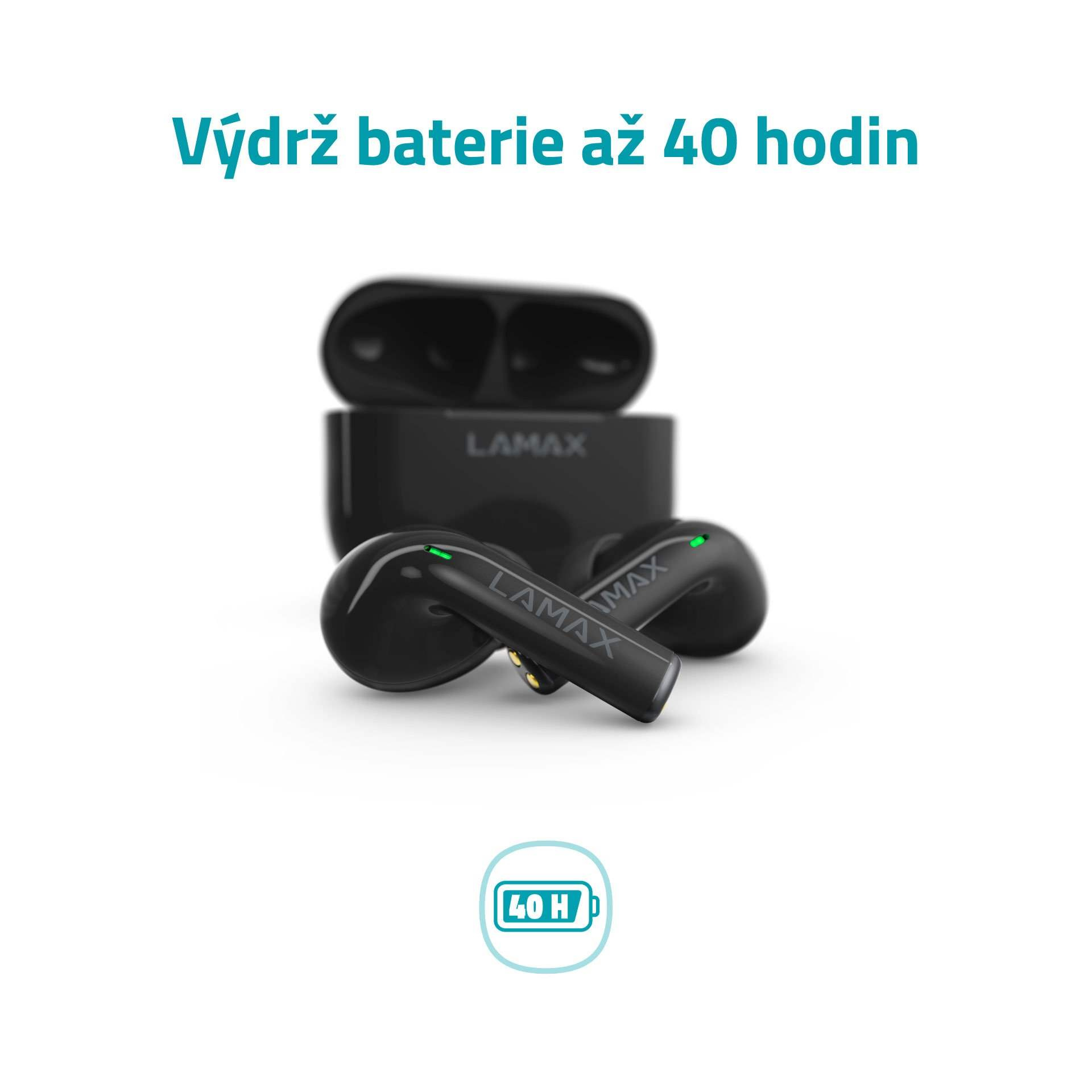 Žádné kabely? Super. Hledat furt nabíječku? To nechceš, a my to víme. Proto LAMAX Clips1 vydrží až 40 hodin. 8 hodin zmáknou po vyndání z pouzdra a to je nabije až čtyřikrát – kdekoliv a bez zásuvky. Celý pracovní týden nebo několikadenní výlet tak nemusíš šťávu vůbec řešit.