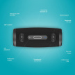 Je jedno, jestli máš playlist na party na jednom zařízením a oblíbený podcasty na jiným, přes nejmodernější Bluetooth 5.3 se reprák automaticky spáruje s jakýmkoliv zařízením a frčí až na vzdálenost 15 metrů. Trápit tě nemusí ani formáty, tahle mašinka podporuje MP3, WAV, FLAC a široká je i škála podporovaných připojení - Micro SD, USB-A, 3,5 mm AUX. Parádní záležitostí je taky možnost naladění FM rádia třeba pro případy, kdy si zapomeneš vlastní muziku. A jelikož každá událost si žádá správnou atmošku, máš na výběr z 5 nastavitelných LED efektů.