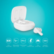 Pomalejším bráchou bezdrátovýho připojení Bluetooth 5.3 je blesk, takže si umíš představit, jak to mezi sluchátkama a telefonem lítá. Automaticky se spolu spárujou a už to frčí. Sluchátka zvládnou parádních 8 hodin na jedno nabití a dalších 34 hodin máš schovaných v pouzdru. Hovory přijímej bez obav, díky kvalitnímu mikrofonu tě vždycky bude slyšet čistě. Patříš mezi gamery nebo filmový maniaky, tak tvojí pozornosti nesmí uniknout herní mód s nízkou latencí. Všechny funkce ovládáš dotykově, takže no stress.