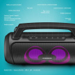 Mít připravený vlastní výběr party songů je top, ale když musíš improvizovat, hodí se i možnost naladit FM rádio a svojí oblíbenou stanici. Kteroukoliv akci si můžeš zkusit také odmoderovat díky přibalenému mikrofonu, který je parádní výbavou i pro karaoke. 3 režimy LED podsvícení na předním panelu ještě dotvoří atmošku. Svůj playlist pak spustíš přes Bluetooth 5.3, který se spáruje s různými zařízeními a je zárukou kvalitního přenosu až na 18 m. Nebo můžeš využít USB, microSD kartu, případně kabel.