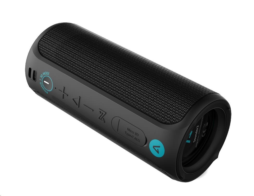 Bluetooth reproduktor Sounder 2 má 2x 15 W, impedanci 48 Ohm a frekvenci 115 Hz - 20 kHz. Nabízí funkci 360° zvuku, připojení přes Bluetooth 5.0, je voděodolný s certifikací IP67. Obsahuje Li-Ion baterií s kapacitou 4000 mAh, na jedno nabití dokáže hrát až 12 h při 50% hlasitosti. Rozměry činí 180 x 75 x 75 mm, hmotnost je 600 g.