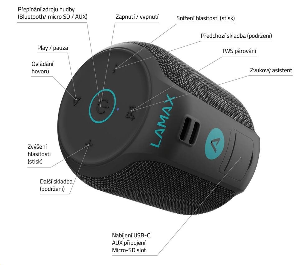 Strč svůj playlist do kapsyHoď se do pohody, ať už jsi doma nebo právě zdoláváš Mount Everest. LAMAX Sounder2 Mini naplní tvoje uši fresh zvukem a s výdrží až 30 hodin ho jen tak nevybiješ. Ať se chceš soustředit, vypnout nebo vyrazit ven, jeho prostorový 360° sound, snadná přenosnost a nejmodernější technologie jako Bluetooth 5.0 ti kdekoliv vytvoří atmosféru. S vysokou voděodolností klidně i uprostřed průtrže.