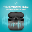 Mikrofony ve sluchátkách umí vyhodnotit a potlačit okolní hluk pomocí ANC režimu, hudbu ale nezkreslí, naopak si ji užiješ mnohem víc. Už žádní křiklouni kolem, divný zvuky v MHD nebo stále telefonující kolega, jen ty a muzika. Když je ale potřeba vnímat okolí třeba na rušný křižovatce, přihlásí se o slovo transparentní režim. Cizí zvuky zesílí, takže ani při placení v krámě nemusíš vyndávat sluchátka.