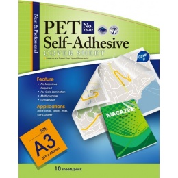 Laminovací film A3 pro JEDNOSTRANNOU laminaci za studenaProdukt:Laminovací film; Formát:A3; Vlastnosti:Lesklá, Samolepící.