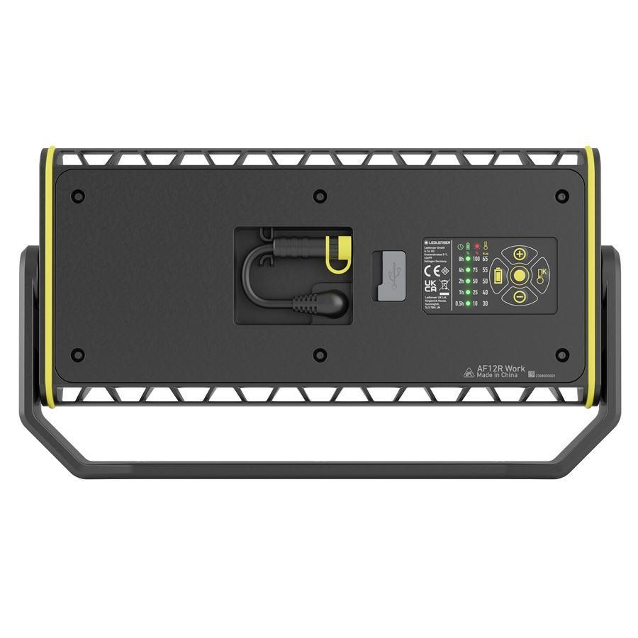 Ledlenser AF12R Work pracovní světloSvětelné módy: 100/75/50/25/10 %. Světelný tok: 8000/6500/4500/2400/850 lm. Doba svícení: 1/1,5/2/4,5/12,5 hod. Teplota světla: od 3000 K do 6500 K. Hmotnost: 2590 g. Ochrana: IP67 (ze sítě IP20). Typ baterie: Li-ion.