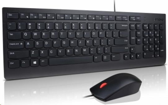 LENOVO klávesnice Essential Wired USB Keyboard + Mouse Set - USB, černáRozhraní setu:Drátový USB; Lokalizace klávesnice:CZ; Druh myši:Optická; Výbava klávesnice:Multimediální klávesy.