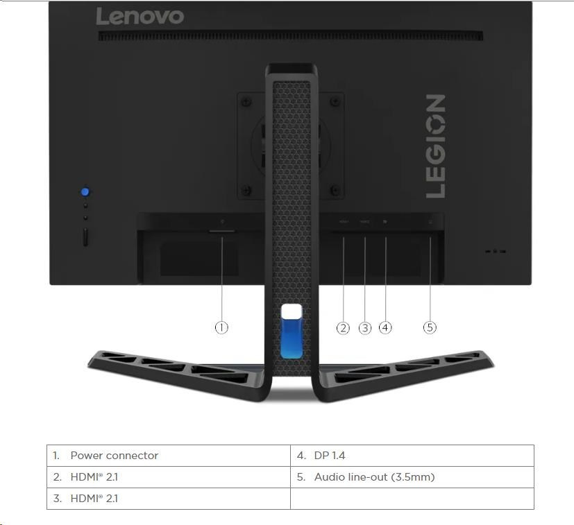 LENOVO LCD Legion R25i-30 - 24.5",16:9,IPS,1920x1080,400 cd/m2,1000:1,0.5-5ms,HDMI,DP,VESA,PIVOT,3YRozlišení displeje:1920x1080 (Full HD); Úhlopříčka displeje ("):24.5; Výbava:Reproduktory, VESA montáž, Pivot, Nastavitelná výška; HDMI počet:2; DP počet:1; Doba odezvy (ms):5; Formát obrazovky:16:9; Typ panelu:WLED; Jas (cd/m2):400; Kontrast:1:1000; Obnovovací frekvence displeje (Hz):165; Povrchová úprava displeje:Matný; VESA rozměry:100x100.