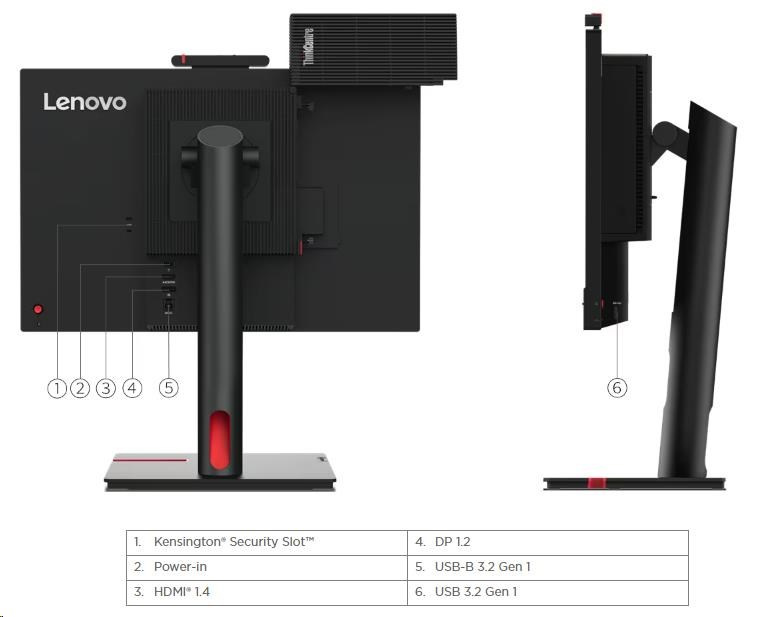 LENOVO LCD TIO 22 Gen5 - 21.5",IPS,matný,16:9,1920x1080,178/178,4/6ms,250cd/m2,1000:1,DP,USB,VESA,Pivot,repro,camPoužití:Profesionální; Rozlišení displeje:1920x1080 (Full HD); Úhlopříčka displeje ("):21.5; Vlastnost:Rovný; Výbava:VESA montáž, Pivot, Nastavitelná výška, Kamera, Mikrofon; Rozhraní vstup:HDMI, DP, USB; HDMI počet:1; HDMI verze:1.4; DP počet:1; DP verze:1.2; USB počet:2; USB verze:3.2; USB umístění:Na boku, Vzadu; Barevná hloubka (bit):8.