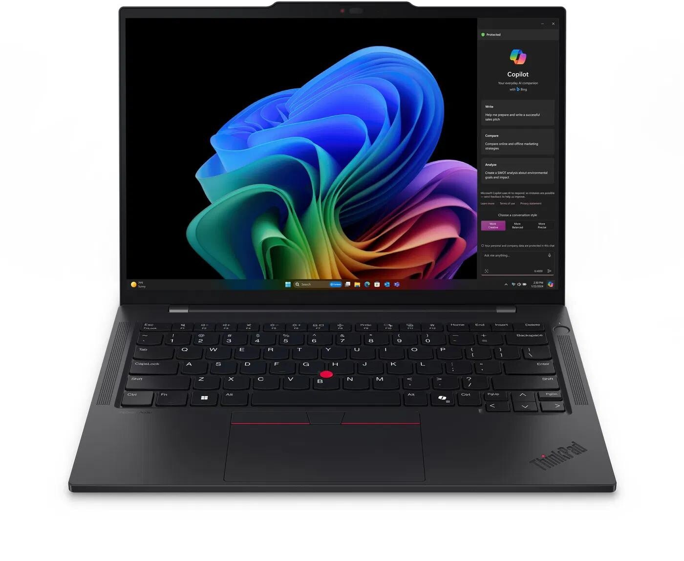 Notebook Lenovo ThinkPad T14s Gen 6 je vybaven výkonným dvanáctiijádrovým procesorem Qualcomm Snapdragon X Elite. Tento procesor představuje výrazný skok vpřed ve výkonu spolu se zapojením umělé inteligence. Qualcomm AI Engine s vysokým celkovým výkonem má speciální NPU jednotku pro manipulaci se softwarem a aplikacemi využívajícími AI. Zvládá ty nejnáročnější úkoly v režimu multitaskingu a prodlužuje mobilitu díky vynikající výdrži baterie. Ostrý obraz zprostředkuje 2,8K antireflexní displej s poměrem stran 16:10, 120Hz obnovovací frekvencí, svítivostí 400 nitů a 100% barevnou škálou DCI-P3. Se superrychlým rozhraním Thunderbolt 4 se můžete snadno připojit k dalším monitorům s rozlišením až 4K. Pracovat budete na podsvícené klávesnici s Trackpointem.
