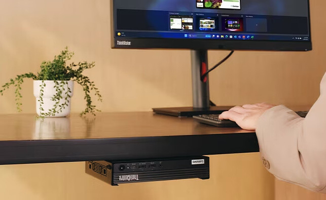 Tento počítač Lenovo navrhlo tak, aby poskytoval výkon i spolehlivost, ale přitom byl maximálně kompaktní a ušetřil spoustu cenného místa. Navíc podporuje i různé držáky pro maximalizaci možností instalace – například za monitor či pod stůl atp.