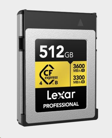 Lexar CFexpress 4.0 Pro Gold R3600/W3300 512GBTyp karty:CFExpress; Kapacita uložiště:512 GB; Typické použití:Nahrávání 4K videí.